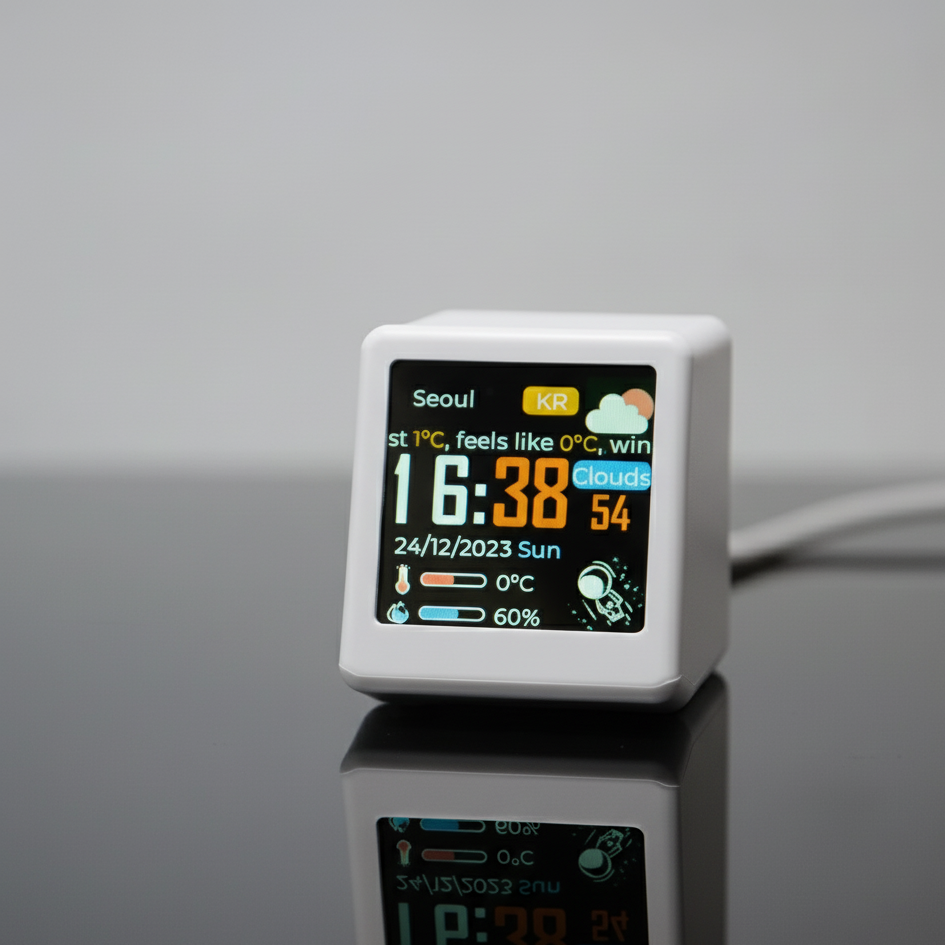 Jedno delikatne dotknięcie i GeekOn™ zmienia się w minimalistyczny zegar. Płynne animacje sprawiają, że przestrzeń przy biurku jest spokojna, uporządkowana i estetyczna.